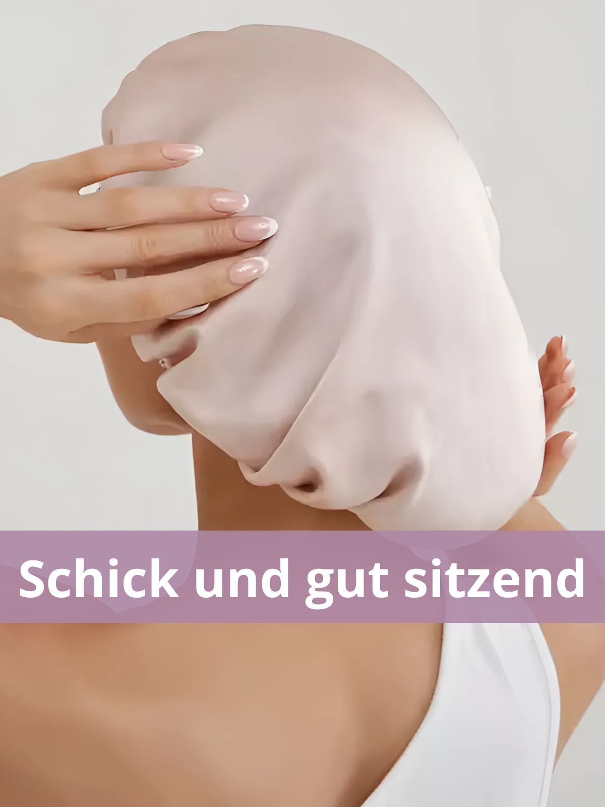 Die elegante Turbanform passt sich sanft der Kopfform an, während ein unauffälliger Gummizug auf der Rückseite für einen angenehmen und sicheren Sitz sorgt. Dieses raffinierte Haltesystem gewährleistet, dass die Haube die ganze Nacht über an Ort und Stelle bleibt – ohne zu verrutschen oder Druckstellen zu hinterlassen.